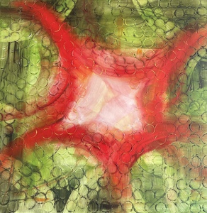 2005De beweging in dit werk laat vlakken zien ,waarin de lijnen oplossen. Er is gebruikt gemaakt van paraplustof. Acrylverf